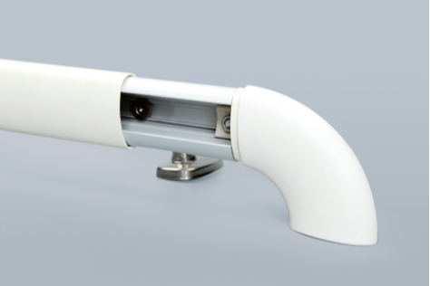 第三,醫用防撞扶手的外表采用原生料顆粒制作,面板厚度≥2mm,沒有連接的縫隙,不能帶粗糙刺手的塑料毛邊,否則會影響把握時的手感。